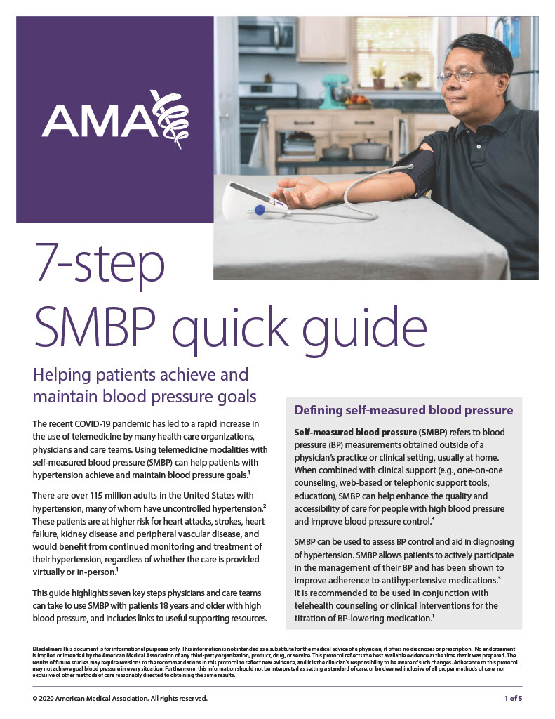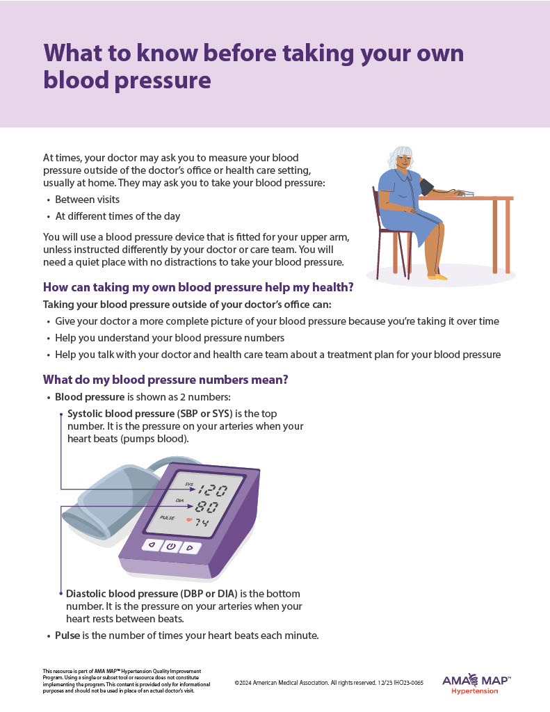 Learn how to measure your blood pressure at home. SMBP enables doctors to better diagnose and manage high blood pressure while helping you take a more active role in your health.