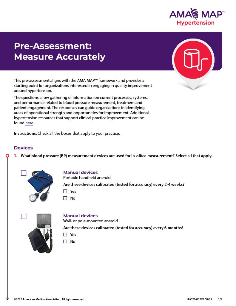 This Measure Accurately pre-assessment aligns with the AMA MAP™ framework and provides a starting point for organizations interested in engaging in quality improvement around hypertension.